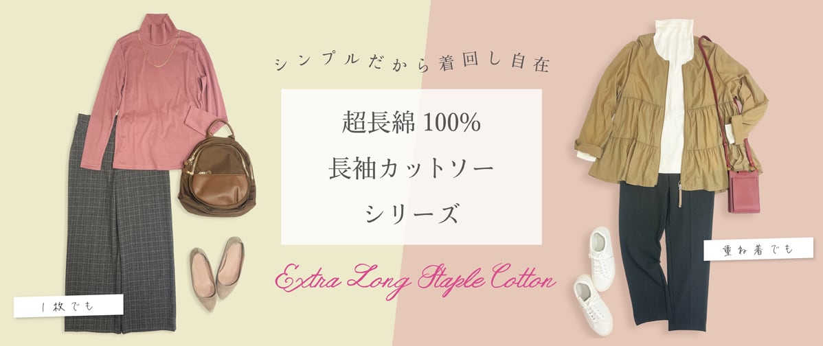 超長綿100%タートルネック長袖プルオーバー