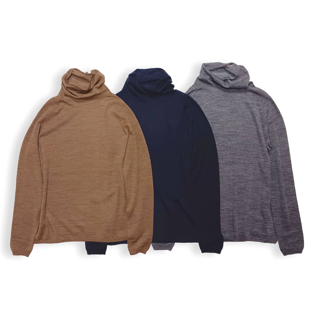 シンプルなデザインが特徴で、無駄のないシルエットが美しい印象を与えます。薄手のウール素材は肌触りが柔らかく、心地よいライフスタイルに寄り添います。レイヤードスタイルにもぴったりで、上に重ねてもごわつかず、スマートに着こなせます。
