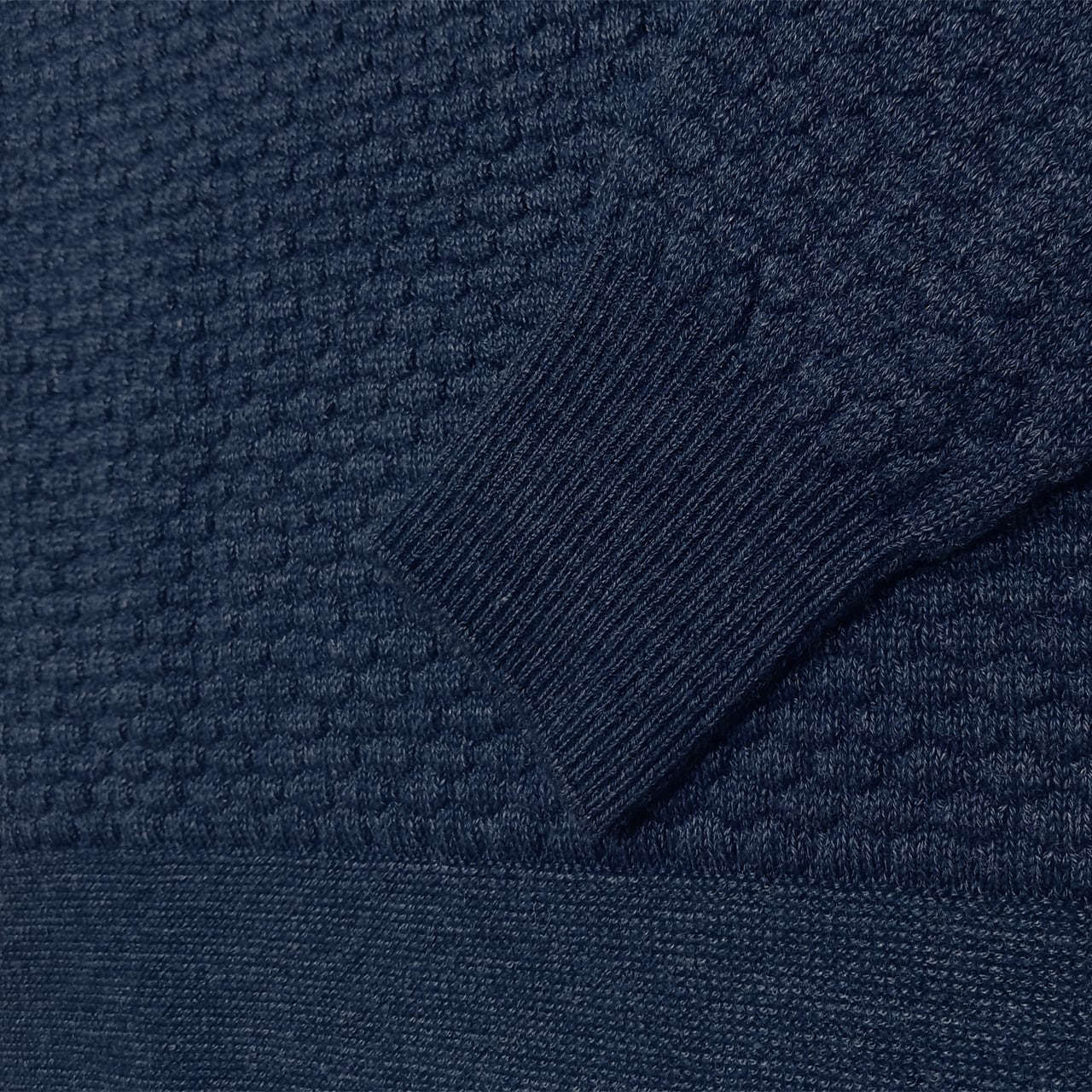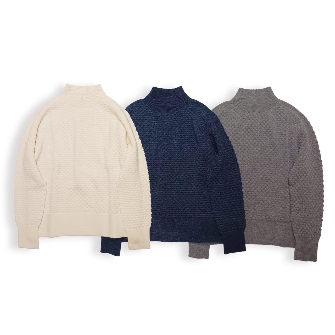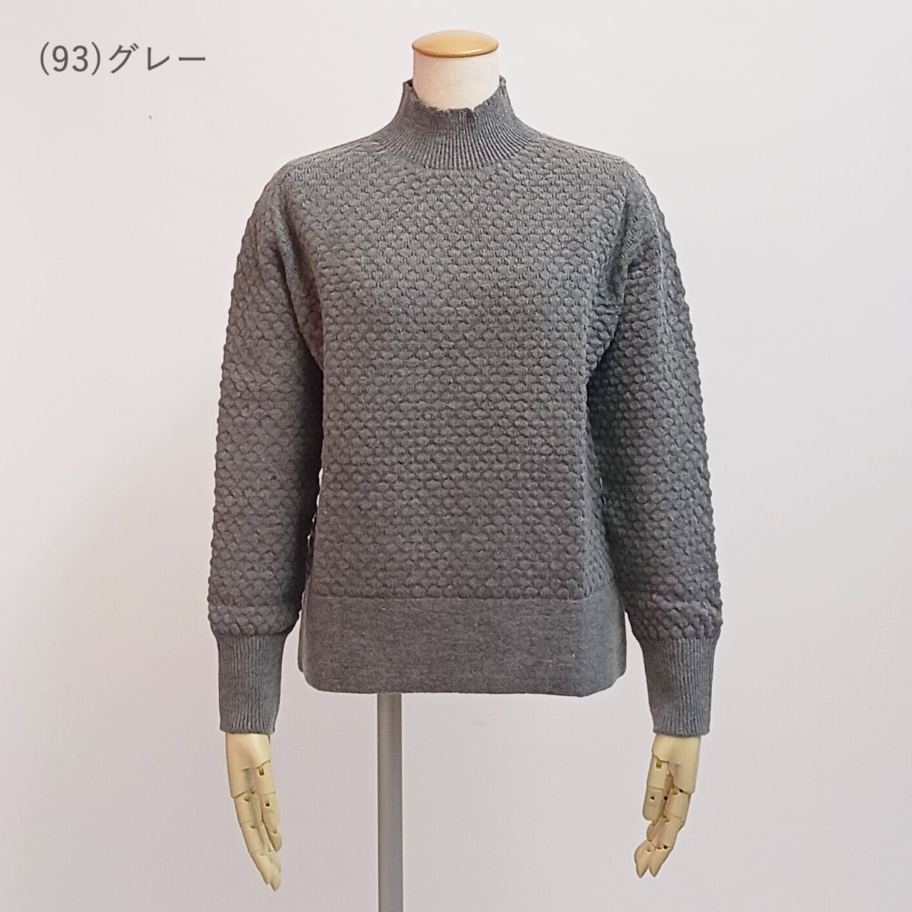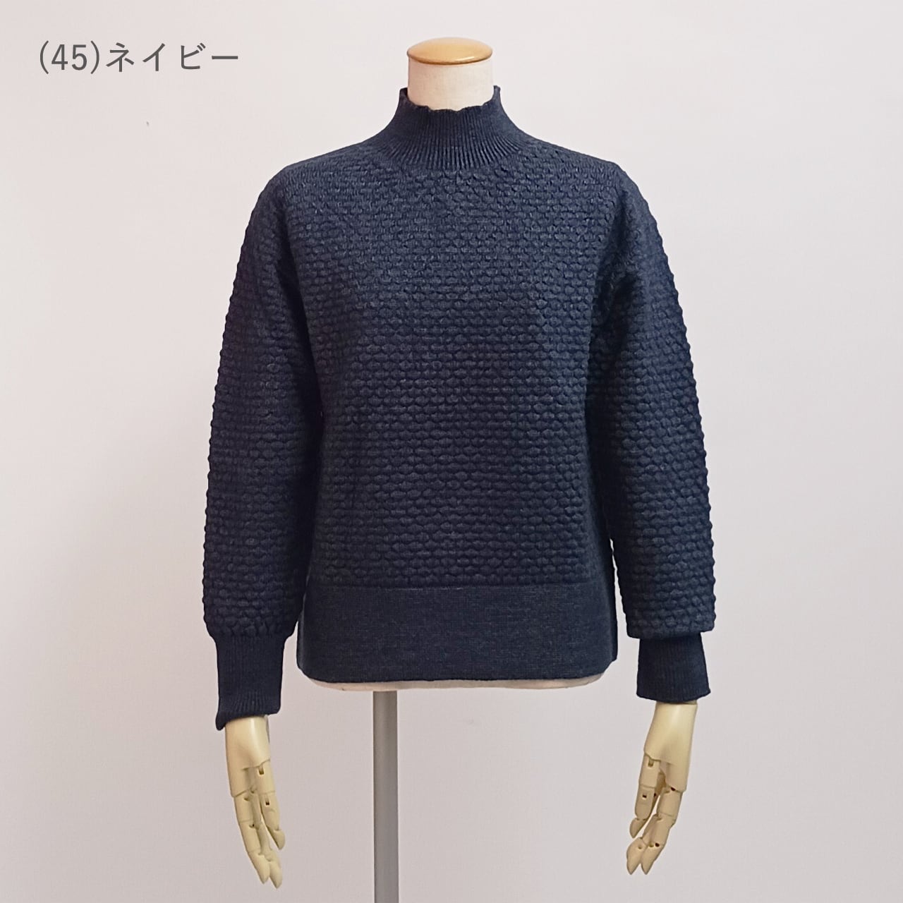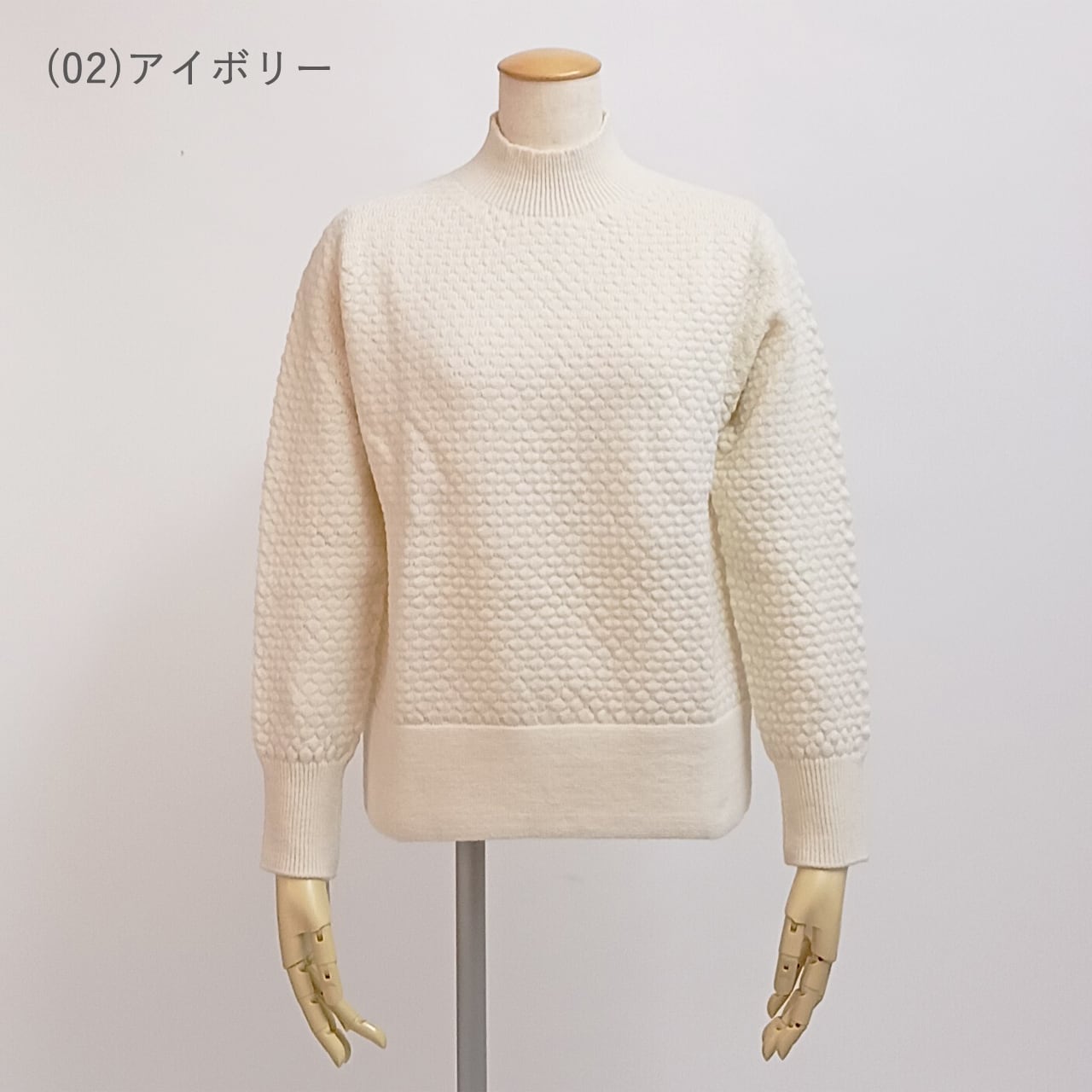 心地よい厚みと温もりを提供するシルク混ポップコーンハイネックセーターです。