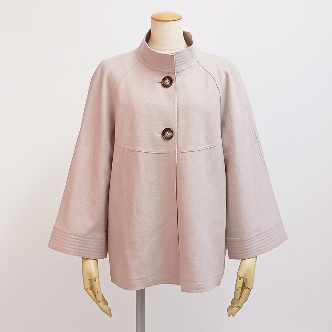ニュアンスカラーとケープ調のデザインが魅力の圧縮ニットスタンドカラージャケットコートです。