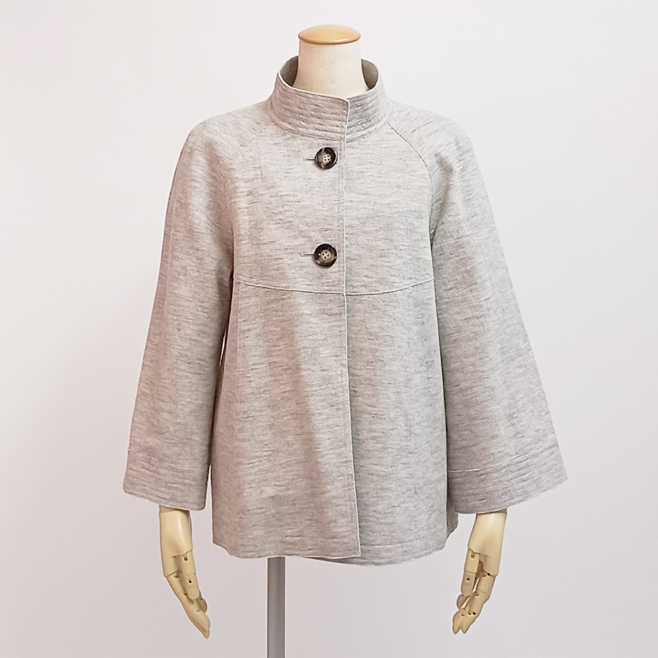 圧縮ニット素材を使用しており、程よい厚みを持ちながらも、軽くやわらかい着心地を実現しています。ジャケットとショートコートの良いとこ取り。Aラインのシルエットが女性らしい印象を引き立てます。スタンドカラーと広がった袖がポイントとなっており、カジュアルから少しドレッシーなシーンまで幅広く対応できるアイテムです。これ一枚で、スタイリッシュなコーディネートが簡単に完成します!