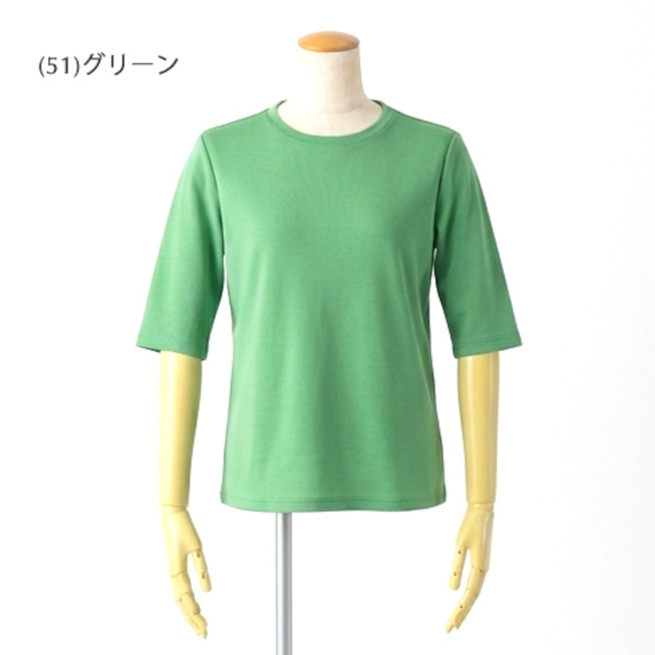 肘まで隠れる安心の五分袖は、気になる二の腕をスマートにカバーし、冷房対策にも最適です。