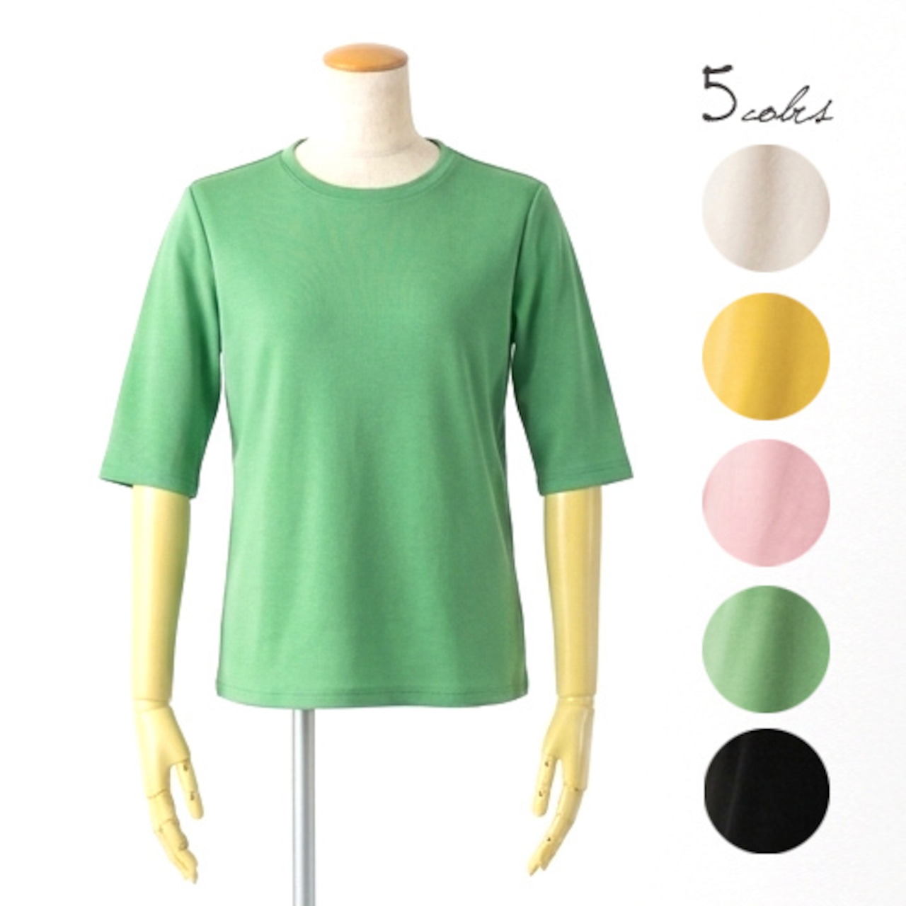 スーピマブレンド綿100%クルーネック五分袖カットソー