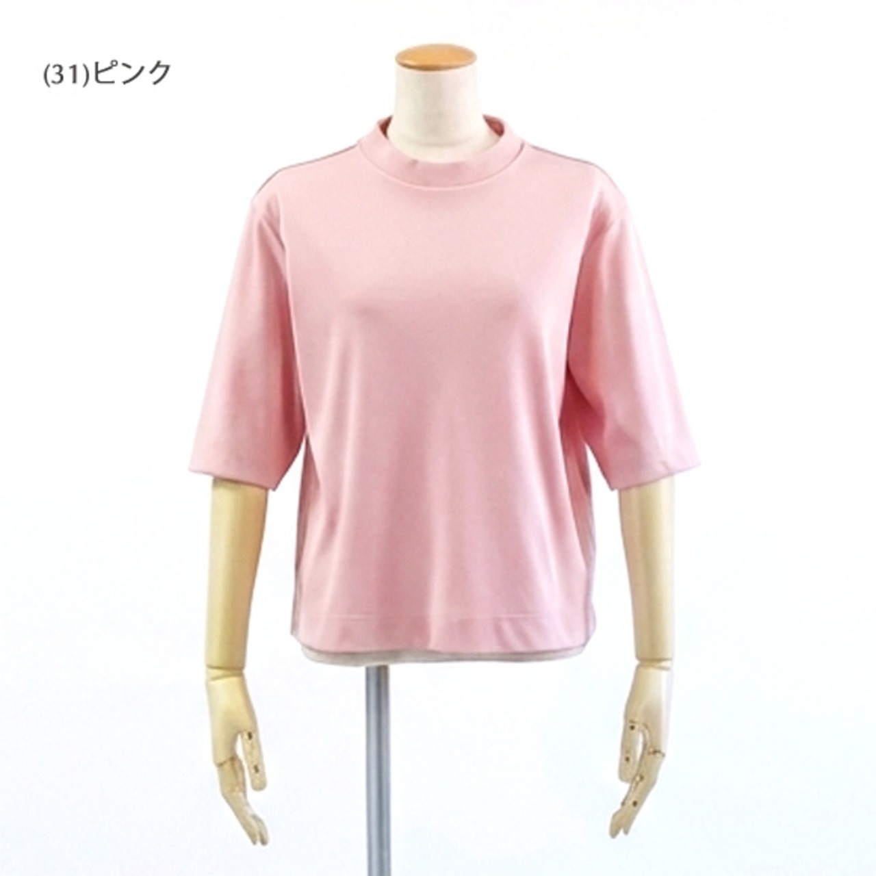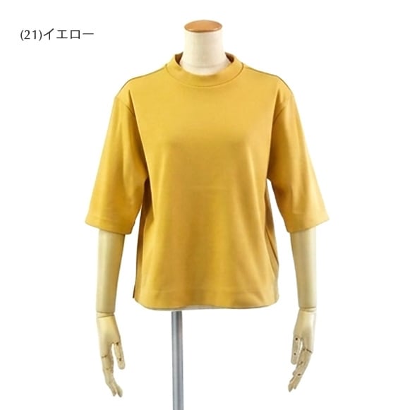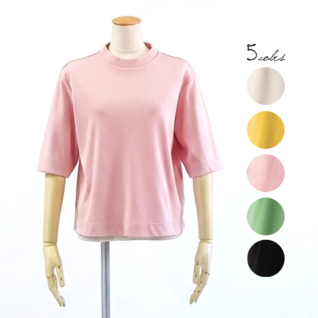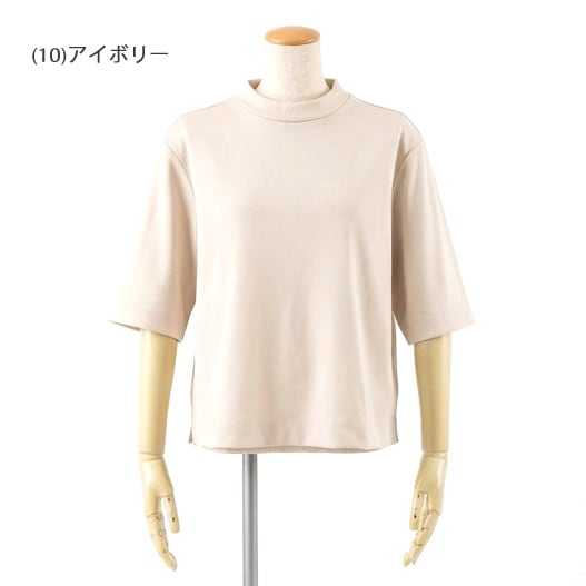 スーピマブレンド綿100%モックネック五分袖カットソー