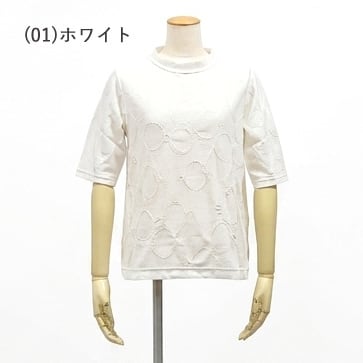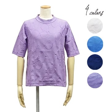 繊細なリング状の模様が浮き出たジャカード地が魅力的なこのカットソーは、シンプルでありながら存在感を放つ一着です。二の腕をしっかりと隠す絶妙な袖丈は、体型を気にする方にも嬉しいデザイン。ガーゼのように柔らかな素材が、肌に優しくフィットし、快適な着心地を提供します。モックネックのデザインは、首元をしっかりと包み込んでくれる安心感があります。このアイテム一枚でおしゃれなスタイリングが完成しますので、普段使いからちょっとしたお出かけまで幅広く活躍すること間違いなしです!